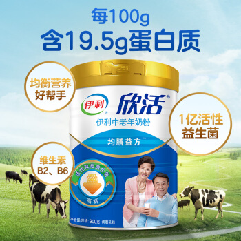伊利欣活 中老年奶粉听装 奶粉 营养早餐 益生菌奶粉 高钙 老年 冲饮 900g罐装