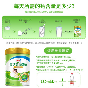 奶粉>>【生产日期新鲜】伊利奶粉 奶粉 学生青年女士奶粉高钙高铁奶粉900g罐装 男士牛奶粉 900g高钙高铁