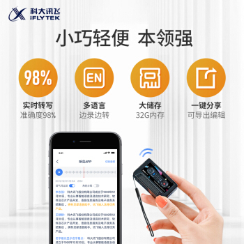 科大讯飞智能录音笔 听见A1转写助手 专业高清降噪 会议录音转文字 录音器 同声传译 微型便携