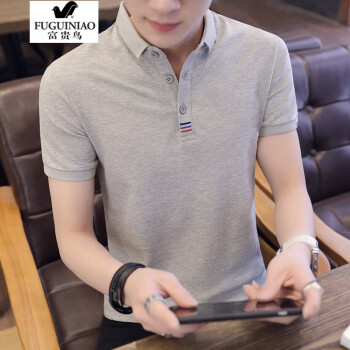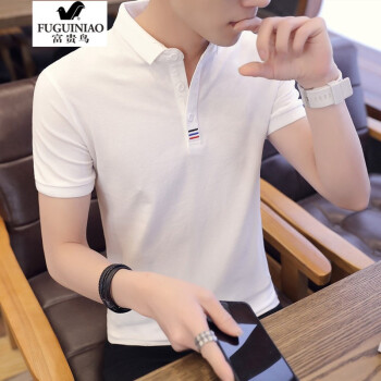 富贵鸟短袖t恤男2020年夏季新款POLO衫半袖衣服男商务休闲棉打底衫夏天男装衬衫领翻领 黑色 131至145斤-XL