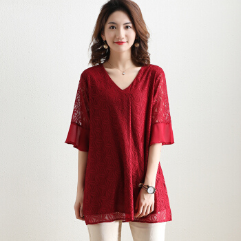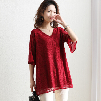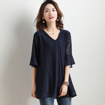 红粉宣言2020夏季新款百搭宽松收腰短袖雪纺上女圆领显瘦上衣 藏青色 2XL |