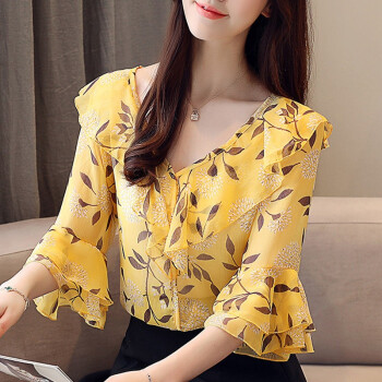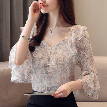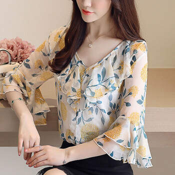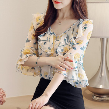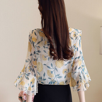 心莉美 雪纺衫女短袖2020夏季新款百搭洋气时尚女装上衣女设计感小众轻熟碎花衬衫女 白底碎花 L