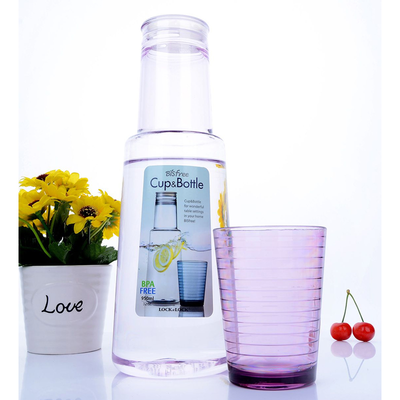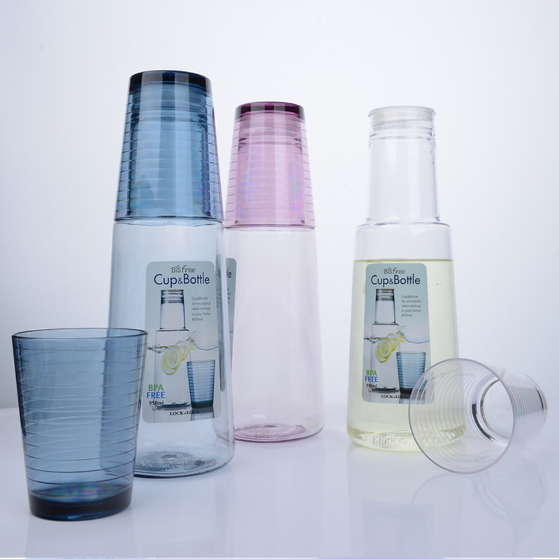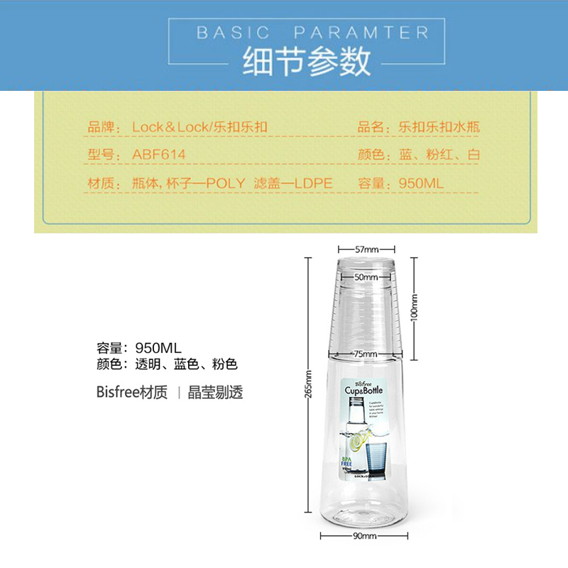 950ml大容量凉水壶,杯盖可直接当水杯使用,方便快捷,杯口有内盖设计防止大面积洒水【塑料杯/颜色自选】