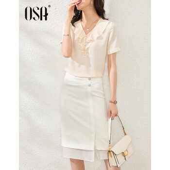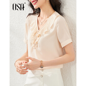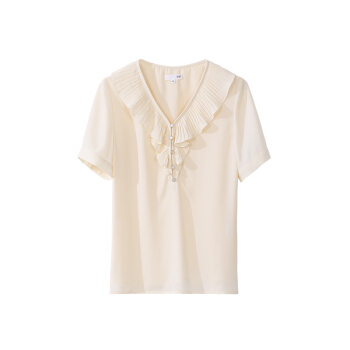 OSA女士短袖雪纺衫夏季2020年新款欧洲站时尚洋气遮肚子小衫上衣 浅杏色 S