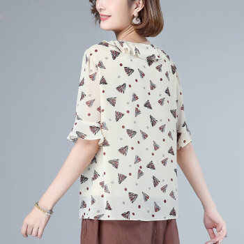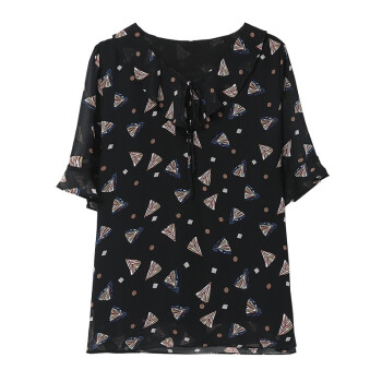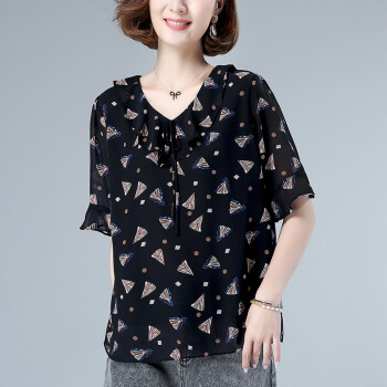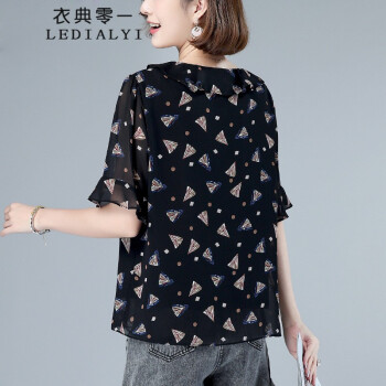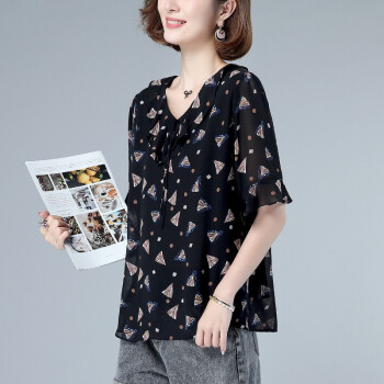 雪纺衫>>衣典零一 2020夏装新款夏季女装雪纺衫女时尚百搭韩版休闲宽松女士妈妈装印花短袖T恤衫女上衣衫衣小衫 黑色 XL