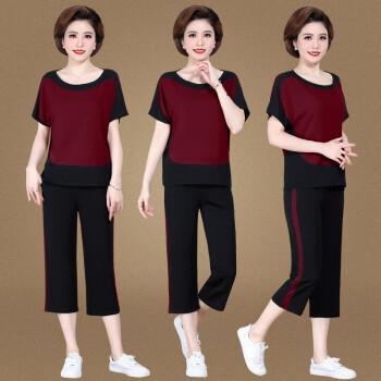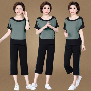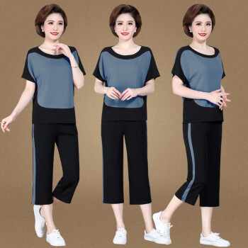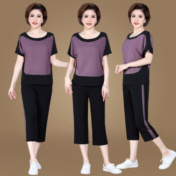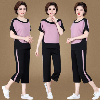 中老年女装>>银研雪中老年女装夏装妈妈装运动休闲套装女洋气上衣服中年女短袖t恤2020新款中老年两件套 浅粉 (请拍对应尺码)