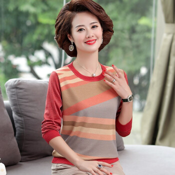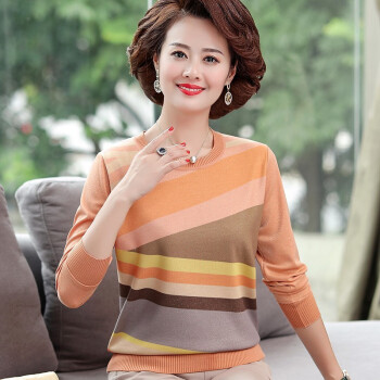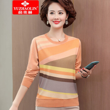 俞兆林中老年人女装妈妈装秋冬装长袖圆领针织t恤打底衫衣服女QQ9169 橙色 请下单正确颜色尺码