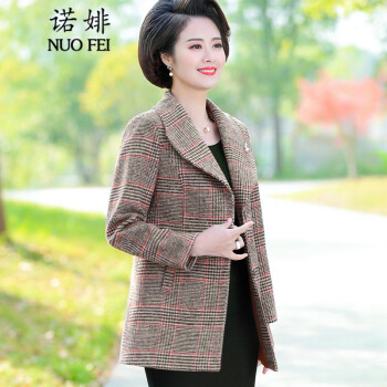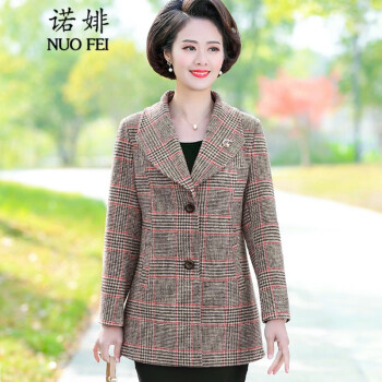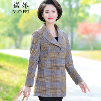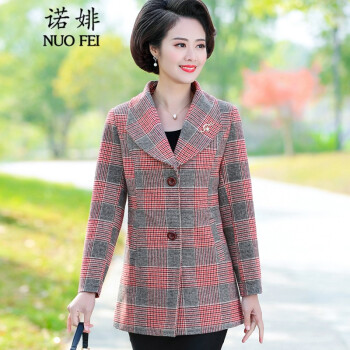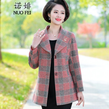 中老年女装>>诺婔新款中年妈妈装春秋装外套洋气高贵显瘦上衣40岁60中老年女装春装气质大码休闲薄风衣短西装奶奶衣服 红格子 4XL 建议135-145斤