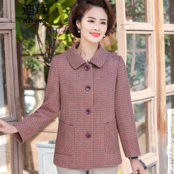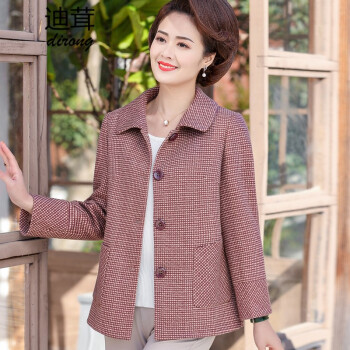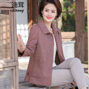 中老年女装>>迪茸新款中年妈妈装春秋装外套洋气高贵显瘦上衣中老年女装春装气质大码休闲薄风衣短西装奶奶衣服40岁60 红色 4XL 建议135-145斤