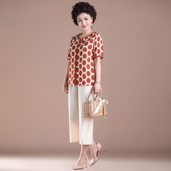 南极人 中老年女装妈妈装2020夏季新款中年人洋气减龄波点短袖上衣 N3-NRE411-A901-红色圆点(上衣) 2XL(建议116-126斤) |