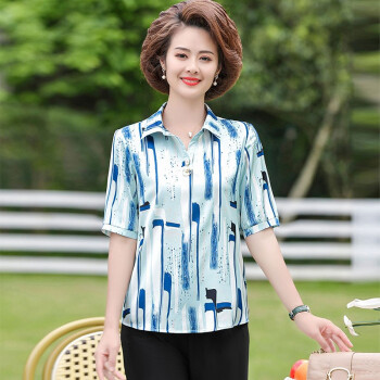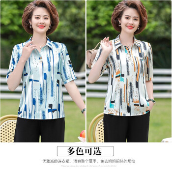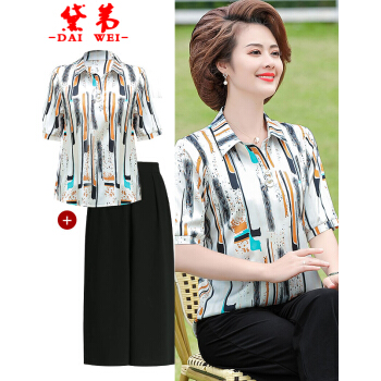 黛苇中老年女装妈妈装夏装洋气套装2020新款女上衣雪纺衫女短袖t恤中年小衫两件套休闲套装大码女装 卡其色(阔腿裤) XL(90-110斤)