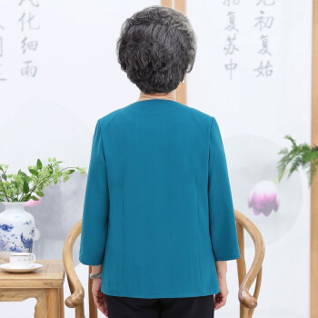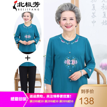 中老年女装>>北极芳 中老年女装春夏装套装衬衫60-80岁奶奶装T恤中长袖大码妈妈装两件套老太太衬衣老年人 042 蓝色套装 2XL【105-120斤】