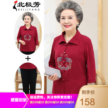 中老年女装>>北极芳 中老年女装妈妈装奶奶装2020新款套装春夏装中长袖老年人休闲衬衫女60-80婆婆衬衣 037 红色套装 2XL【105-120斤】