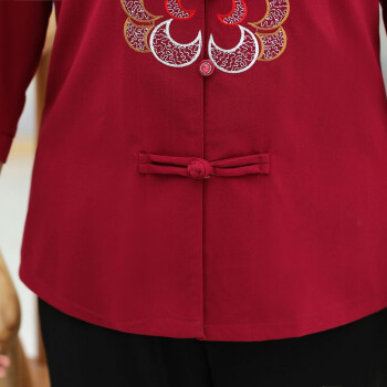 北极芳 中老年女装妈妈装奶奶装2020新款套装春夏装中长袖老年人休闲衬衫女60-80婆婆衬衣 037 红色套装 2XL【105-120斤】 |