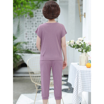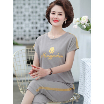 中老年女装>>晳馥香中老年女装夏2020新款中年妈妈装夏装短袖T恤中老年大码上衣服休闲运动套装女装 紫色(套装) (请拍对应尺码)