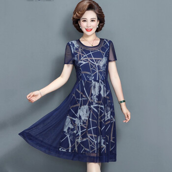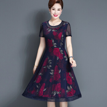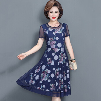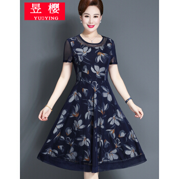 中老年女装>>昱樱中老年女装连衣裙2020新款夏装碎花裙4050岁妇女阔太太过膝大码宽松中年女装薄款高贵妈妈装裙子 1号色 此码勿拍.请拍自身对应码数