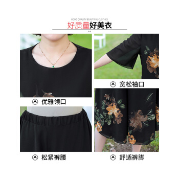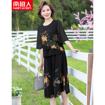 南极人 中老年女装2020夏季新款雪纺中年妈妈装七分袖碎花洋气减龄两件套 黄色花 3XL(建议120-135斤) |
