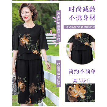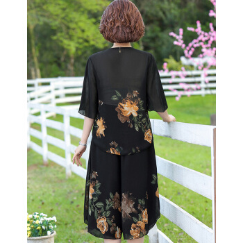 中老年女装>>南极人 中老年女装2020夏季新款雪纺中年妈妈装七分袖碎花洋气减龄两件套 黄色花 3XL(建议120-135斤)