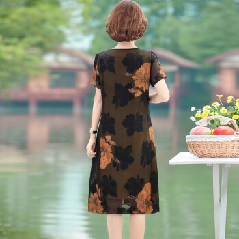 南极人 中老年女装2020夏季新款大码宽松短袖雪纺妈妈装中年连衣裙时尚洋气碎花裙子 N3-NRB03-3008-黄花 3XL【建议120-135斤】 |