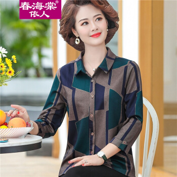 春海棠依人中老年女装衬衣休闲百搭外套上衣服春秋新款奶奶装长袖衬衫妈妈装翻领宽松大码开衫套装+休闲长裤 FH2101绿色+裤子 XL【建议85-100斤】 |