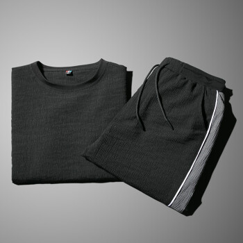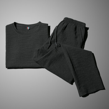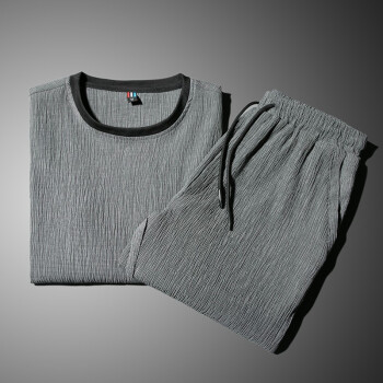 艾特兰 【上衣+裤子】男士冰丝短袖t恤夏季套装男薄款夏天一套帅气潮牌休闲运动长裤亚麻套装男衣服 925长裤套装灰色 XL(125-140斤)