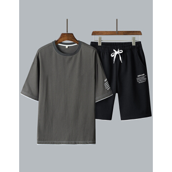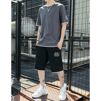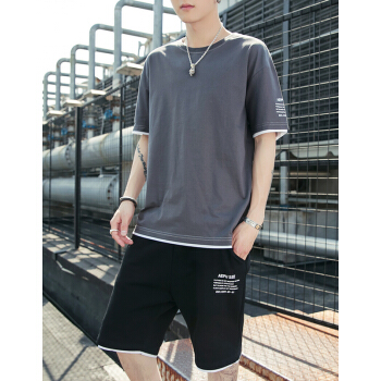 其他衣服>>等歌短袖t恤男士t恤短袖夏季薄款圆领潮牌男装丅恤男半袖卫衣运动套装仿棉新款短袖T恤男休闲短裤男两件套 1902深灰 XL