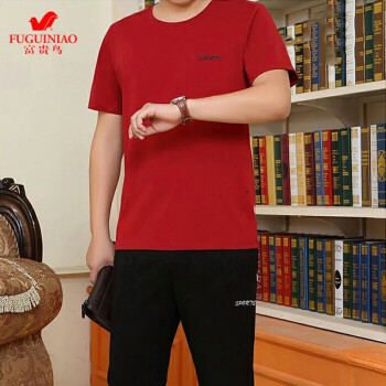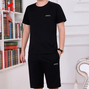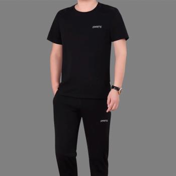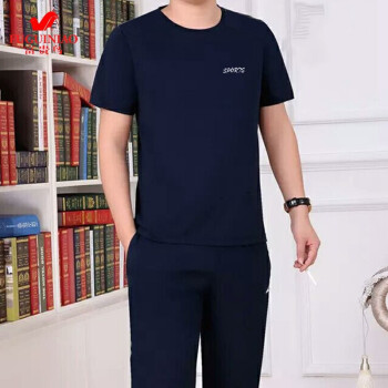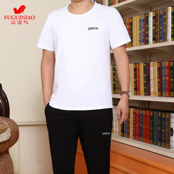 富贵鸟短袖t恤男套装夏天圆领修身半袖打底衫上衣服男装半截袖体恤polo衫 蓝色(短袖+长裤) 4XL(175-195斤)