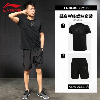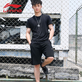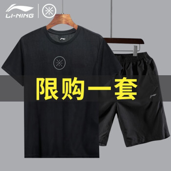 李宁运动套装男士速干短裤男2020夏季服饰健身服篮球服运动服饰跑步服衣服透气短袖 黑/黑(韦德) XL