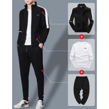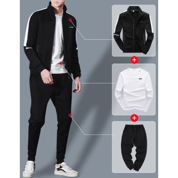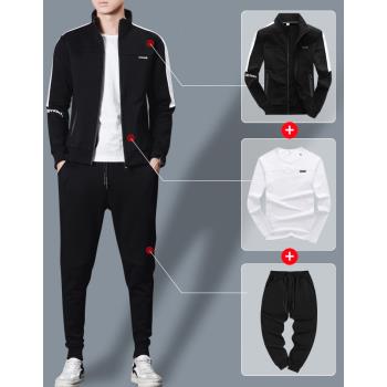 卫衣男秋冬季休闲运动套装2019新款立领外套男士秋冬夹克长袖开衫衣服简约修身秋衣韩版大码男装潮牌 1826三件套 XL
