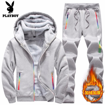 卫衣套装男春秋冬新款时尚潮牌卫衣男装连帽开衫外套加绒加厚保暖套装跑步运动休闲潮流两件套 8818灰色 3XL(建议155斤以下购买)