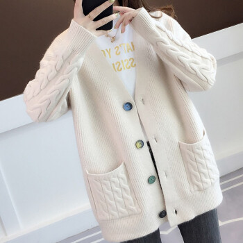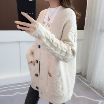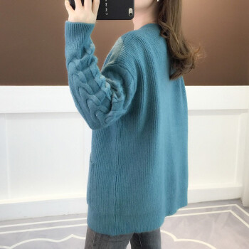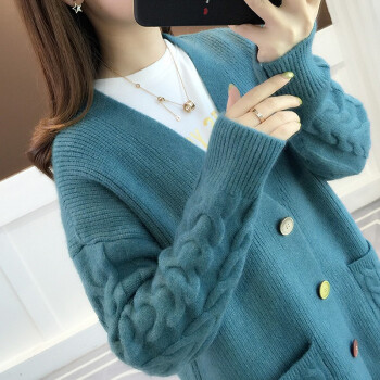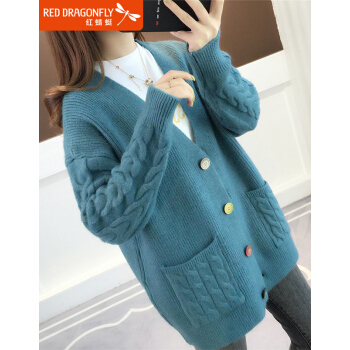 红蜻蜓 2020年春秋新款宽松纯色针织开衫女外搭慵懒长袖秋季毛衣韩版百搭休闲外套女 WL728 蓝色 均码