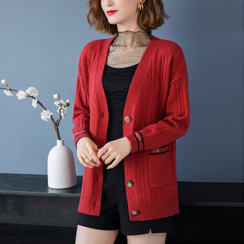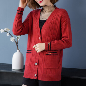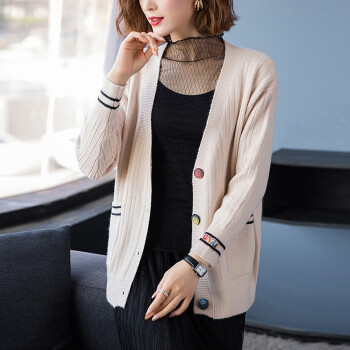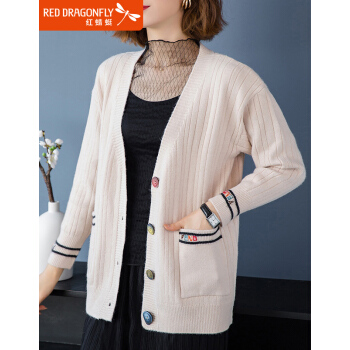 针织衫>>红蜻蜓 春秋装针织开衫洋气2020年新款女装韩版宽松短款上衣潮毛衣外套长袖时尚 WL690-3 米白 均码