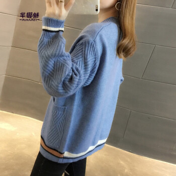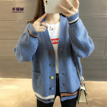 针织衫>>芈娜魅针织衫女开衫2020年秋季新款女装简约慵懒修身长袖针织毛衣上衣女 图片色 请拍正确尺码