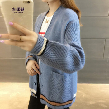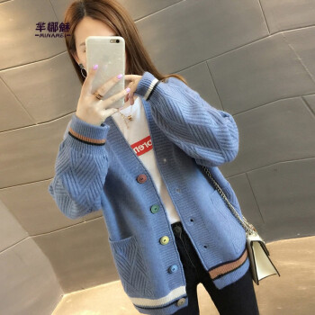 芈娜魅针织衫女开衫2020年秋季新款女装简约慵懒修身长袖针织毛衣上衣女 图片色 请拍正确尺码 |