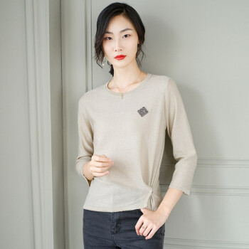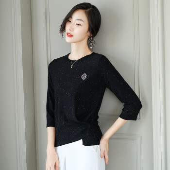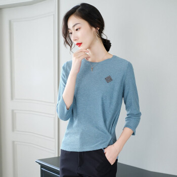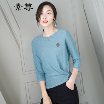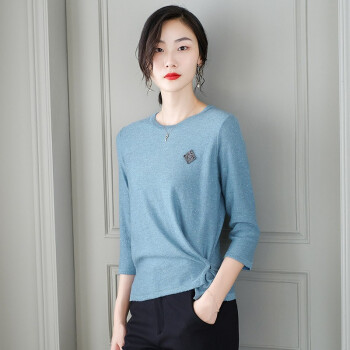 针织衫>>素荨针织衫女短款亮丝打底衫2020秋装宽松上衣七分袖薄款毛衣 蓝色1208 M