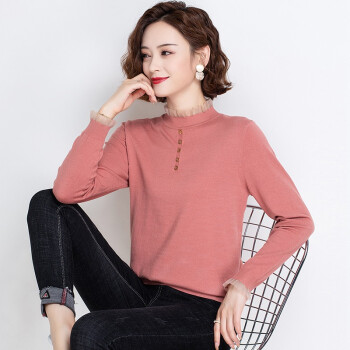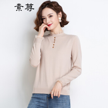 素荨半高领针织衫女秋装2020年新款女装薄款毛衣内搭上衣春秋打底衫 杏色8221 M