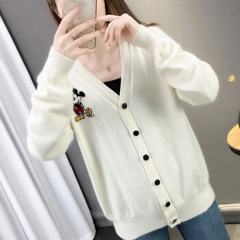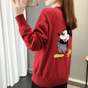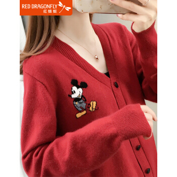 红蜻蜓 2020年新款秋季女装米奇很仙的女士毛衣宽松百搭外穿慵懒针织衫女开衫外套 WL733-2 红色 均码