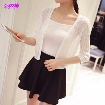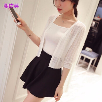 熙依芙针织衫女开衫夏季薄款吊带外搭开衫超仙短款针织衫女镂空冰丝小外套防晒衣披肩 白色 M