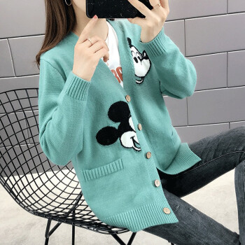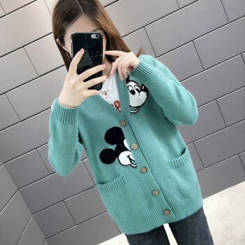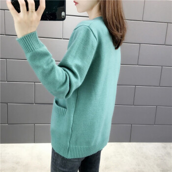 红蜻蜓 针织衫女2020新款秋冬季甜美气质韩版女装开衫V字领宽松型针织毛衣女外套 WL172 绿色 均码 |