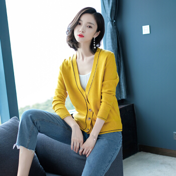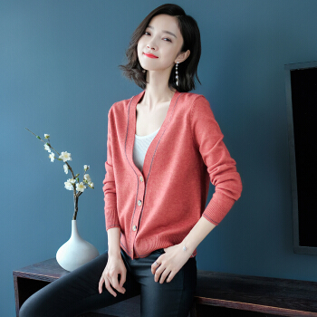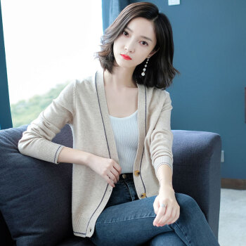 歌米拉 针织衫女开衫春秋短款上衣秋装2020年新款洋气外搭薄款女士毛衣小外套 灰燕麦 M