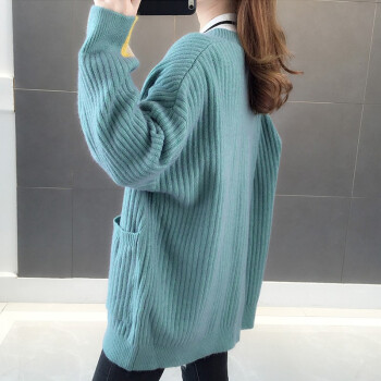 红蜻蜓 针织开衫毛衣女2020新款春秋韩版百搭宽松慵懒风外套时尚针织外搭上衣 WL738 绿蓝 均码 |