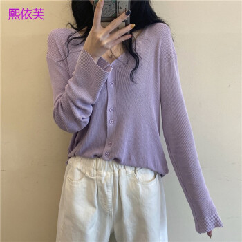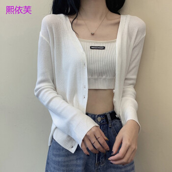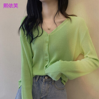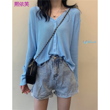 熙依芙针织衫女开衫春夏季2020新款网红V领bm针织长袖防晒开衫冰丝薄款外搭上衣女潮 蓝色 均码