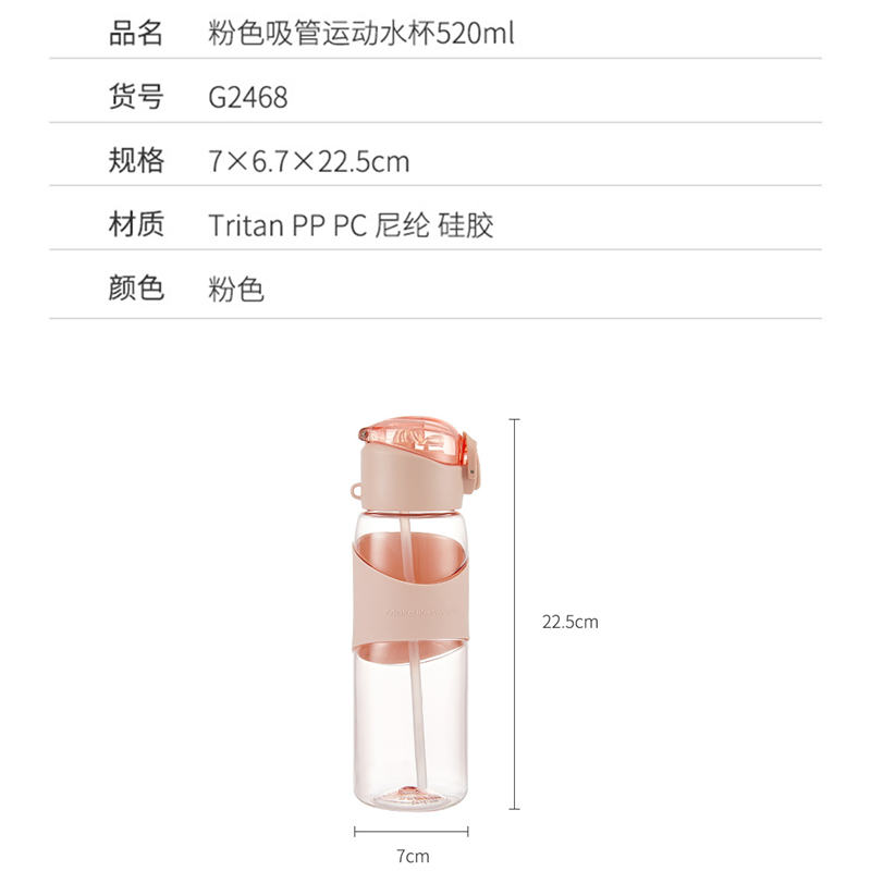 粉色吸管运动水杯520ml【Tritan PP PC 尼纶 硅胶/粉色】
