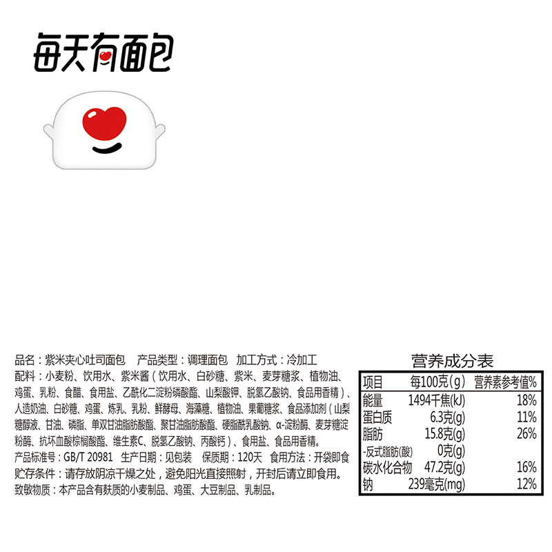 紫米夹心奶酪切片吐司面包