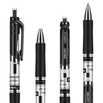 得力(deli)0.5mm按动中性笔办公签字笔 子弹头黑色12支/盒 办公用品S01