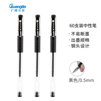 广博(GuangBo) 0.5mm黑色中性笔 办公签字笔 水笔60支装ZX9533D