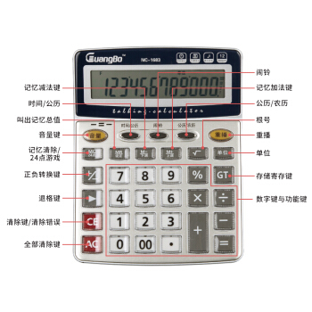 计算器>>广博(GuangBo) 语音型计算器大号12位日期闹钟计算机 单个装NC-1683