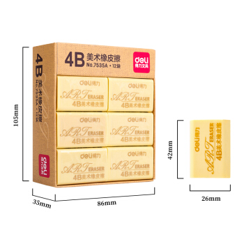 得力(deli)12块大号学生4B黄色考试美术绘图橡皮擦 7535A