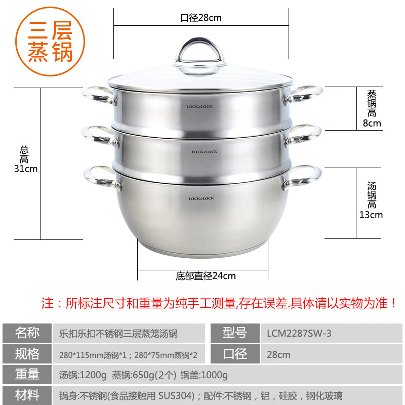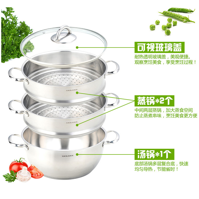 3层加厚304不锈钢复合底蒸锅【不锈钢/不锈钢色】