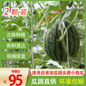 老宋大兴庞各庄精品小西瓜小吊瓜水果袖珍西瓜新鲜水果现摘包邮2个装总重3.5kg-4kg